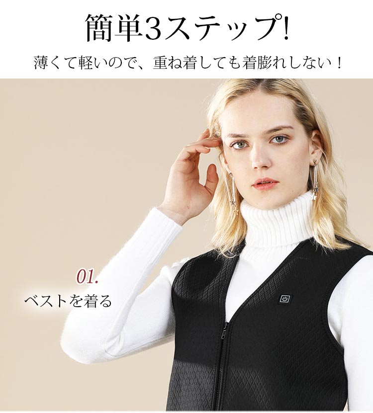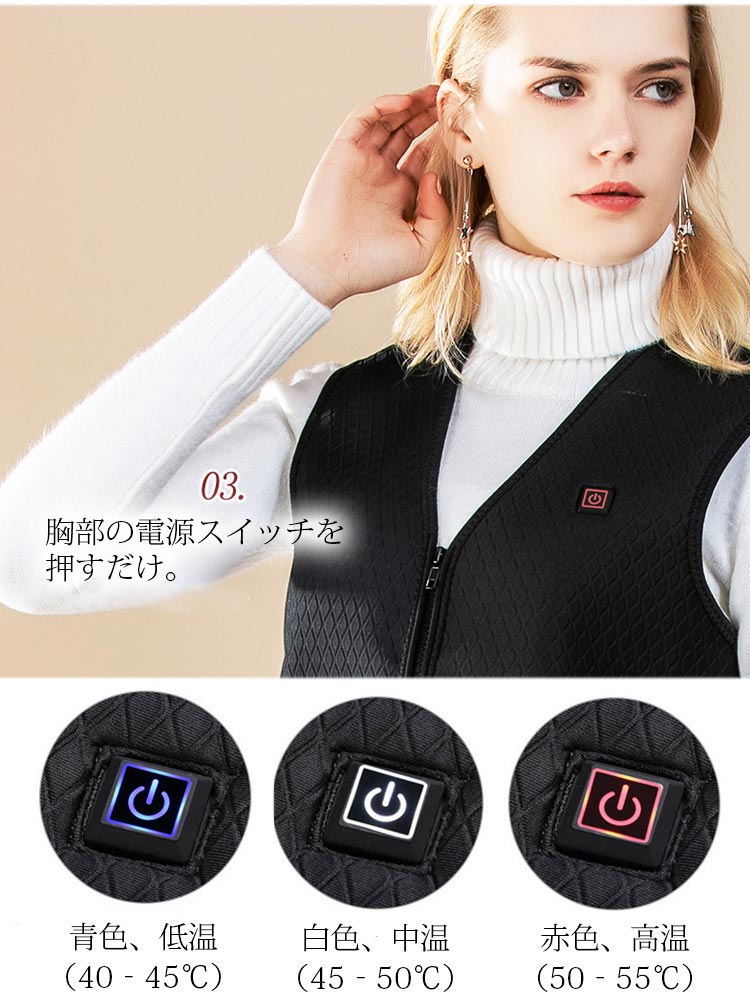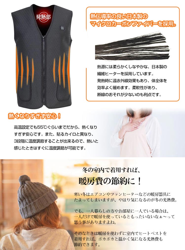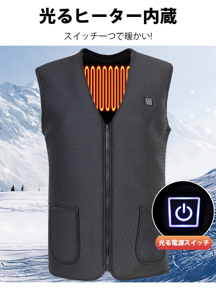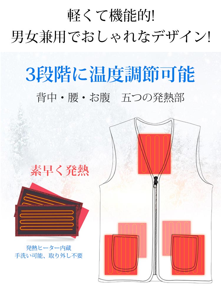 【あったかベスト】3段階に温度調節可能 薄手で軽量 男女兼用 S-3XL