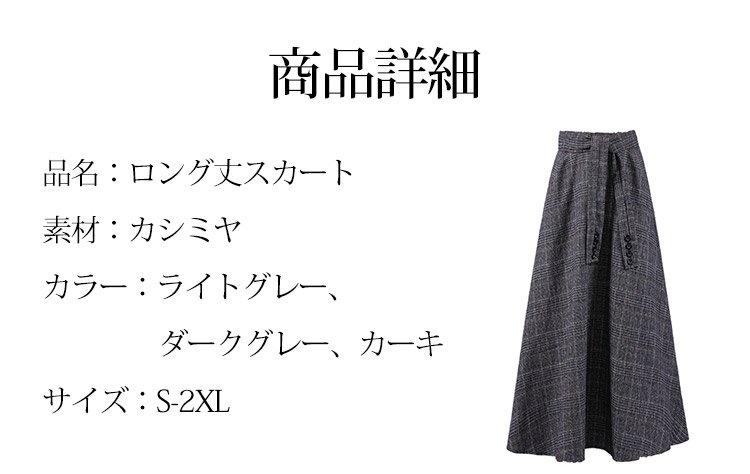 【ロング丈スカート】上質カシミヤ素材を贅沢に使用、シワ防止、程良い落ち感、体型カバー。