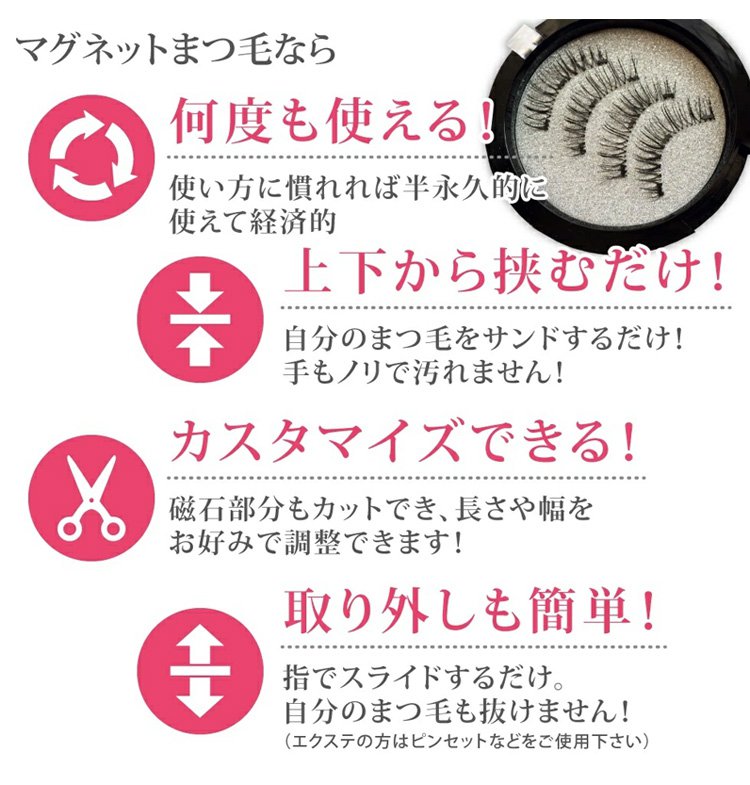 【マグネット式つけまつげ】のりがいらないマグネット式つけまつげ、防水・軽量・安全・繰り返し使用可能!